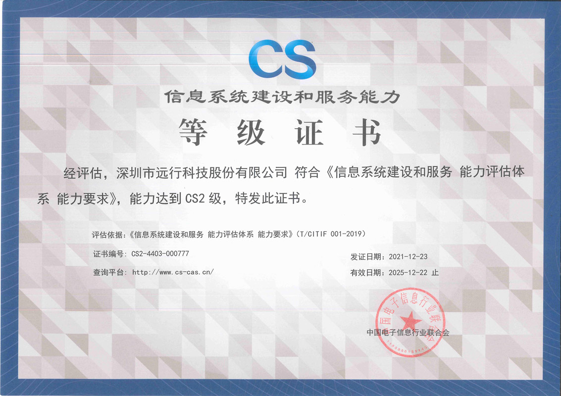CS2級-信息系統(tǒng)建設(shè)和服務(wù)能力等級證書