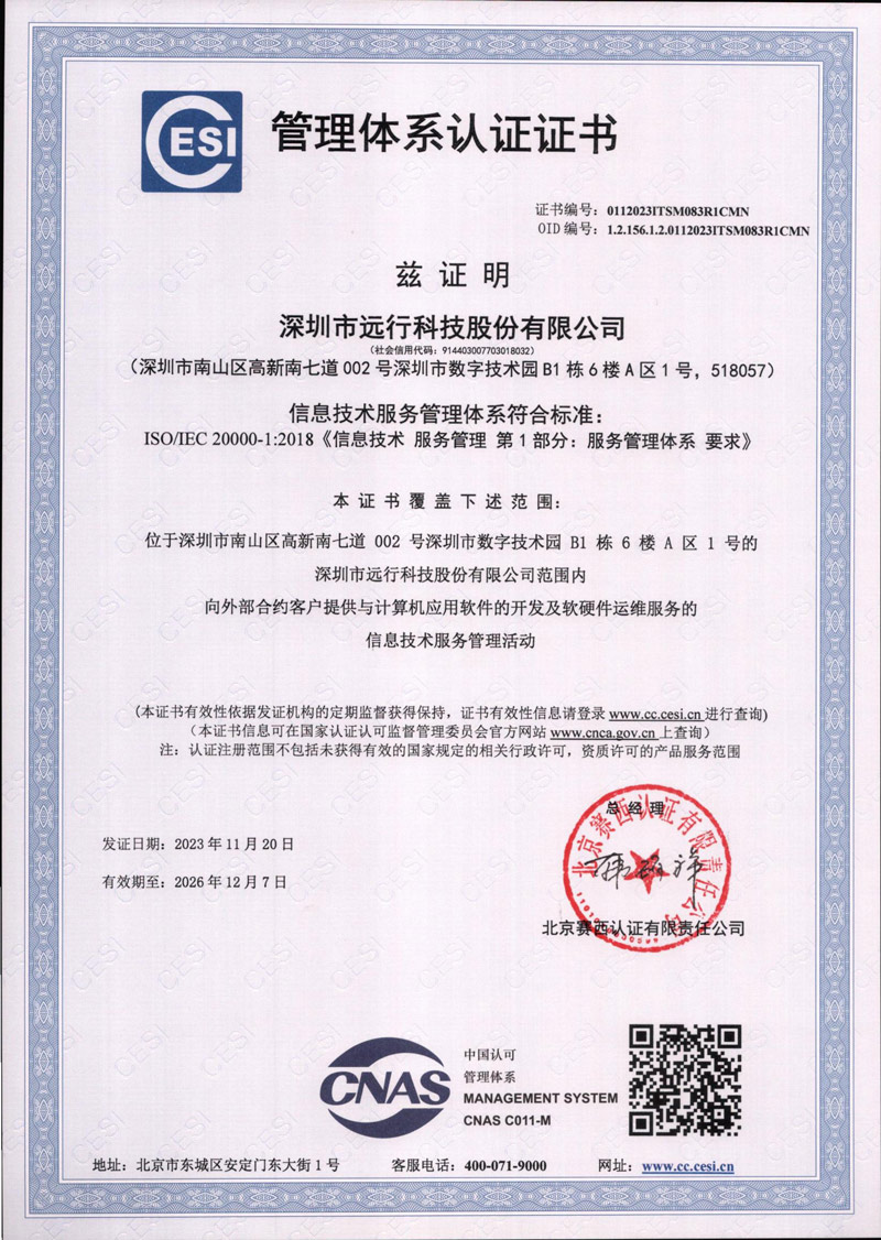 ISO20000-1:2018信息技術(shù)服務(wù)管理體系認證